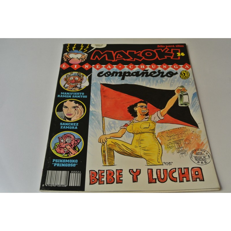 MIGUEL GALLARDO, FELIPE BORRAYO Y JUAN MEDIQUILLA. Nº 24 de la revista. Es un cómics underground protagonizado por Makoki, un personaje "chungo" y violento huido del frenopático que participa en mil correrías por la noche barcelonesa junto a sus colegas. Edición en perfecto estado sin uso y en oferta de 1991.