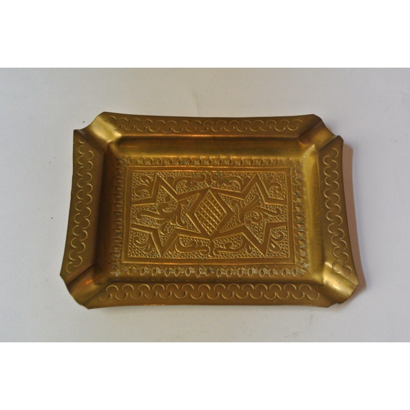 Pequeño cenicero de latón dorado con decoración geométrica típica e la zona. perfecto estado de conservación tal y como se muestra en la fotografía. sin uso y en oferta. original.