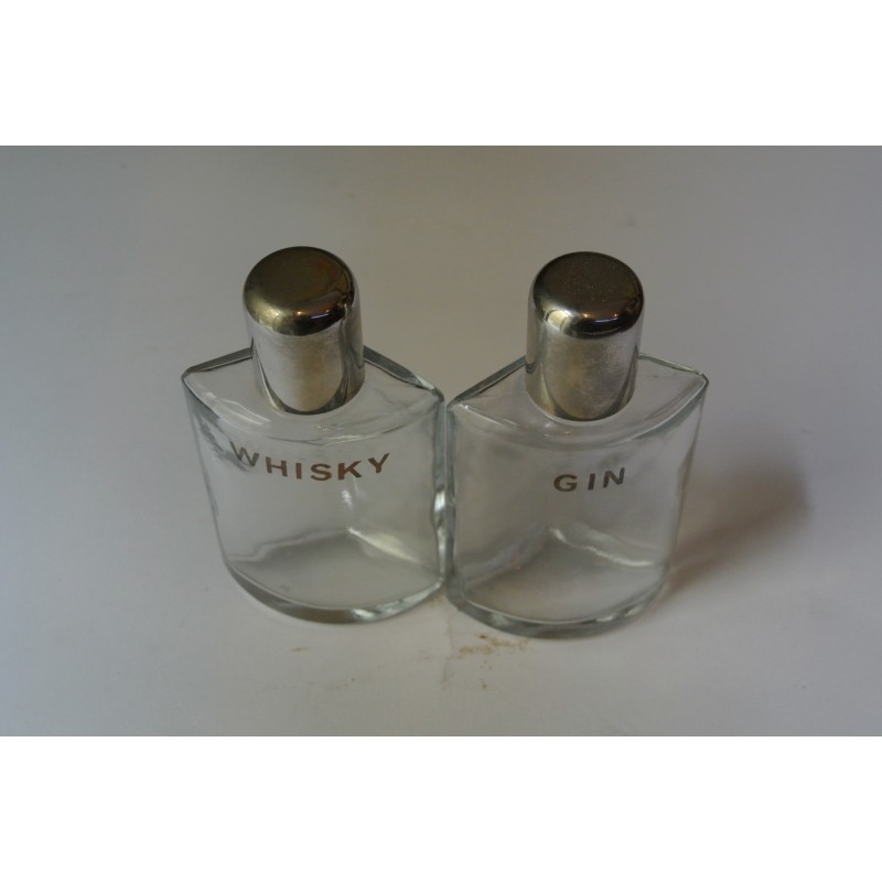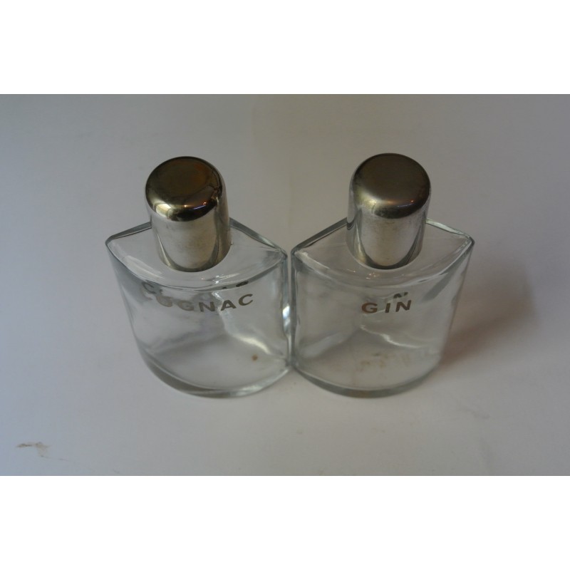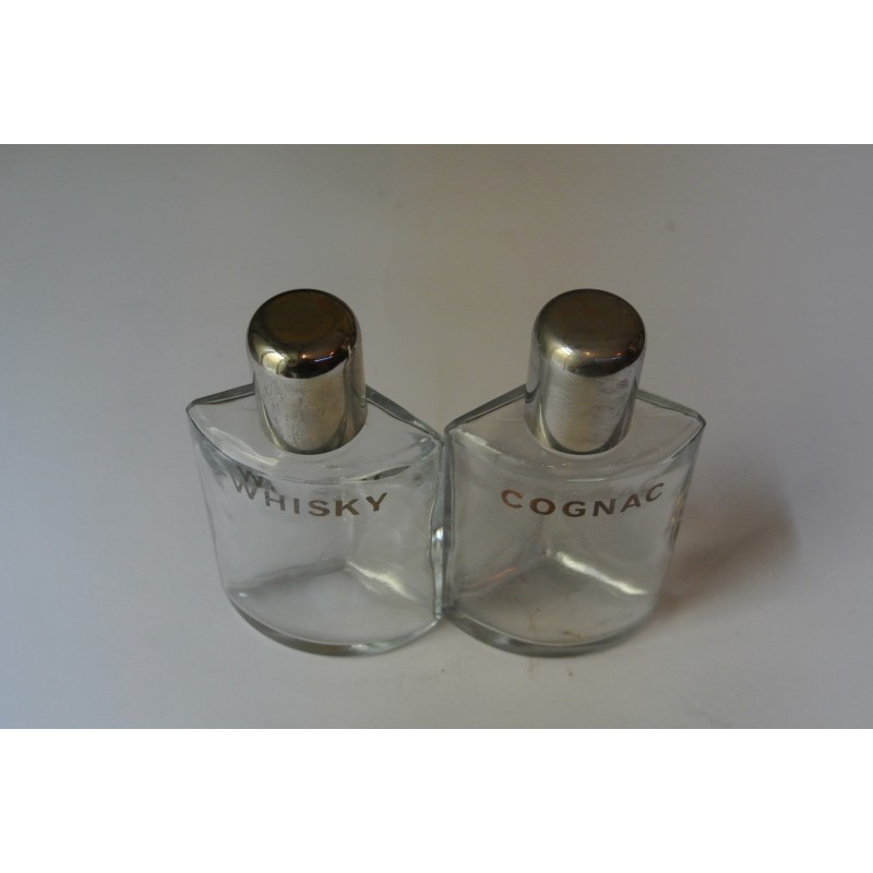 Lote de pequeñas petacas de cristal con el nombre del licor grabado con letras plateadas. Perfecto estados de conservación tal y como se muestra en la fotografía. sin uso y en oferta. Original.