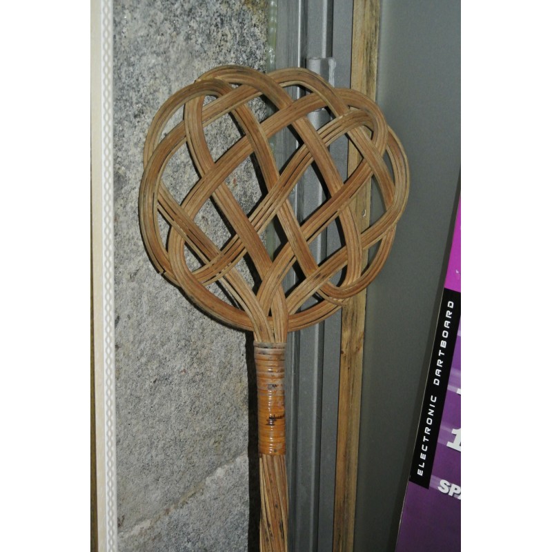 Sacudidor de polvo de mimbre. /0 centímetros de largo. buen estado de conservación tal y como se muestra en la fotografiada. Original. Consultar dimensiones y peso para envío.