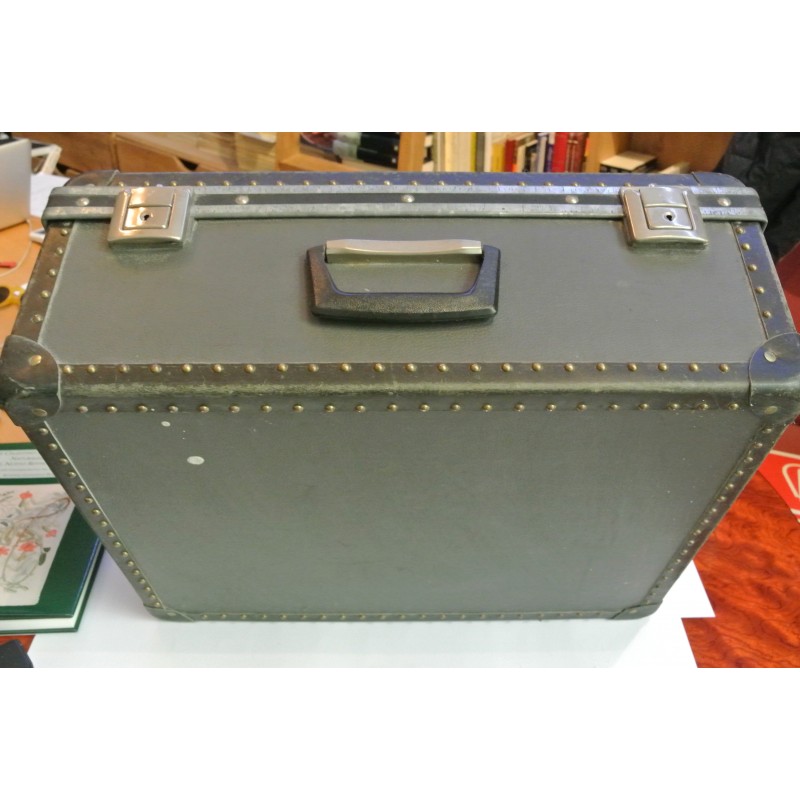 Semicuero rígido. color gris oscuro. 4 bandejas -expositores interiores. 42 cms ancho x 50 cms. largo x 20 cms. alto. Consular precio. Vintage. Perfecto estado de conservación como se muestra en la fotografía. Años 60/70 siglo XX