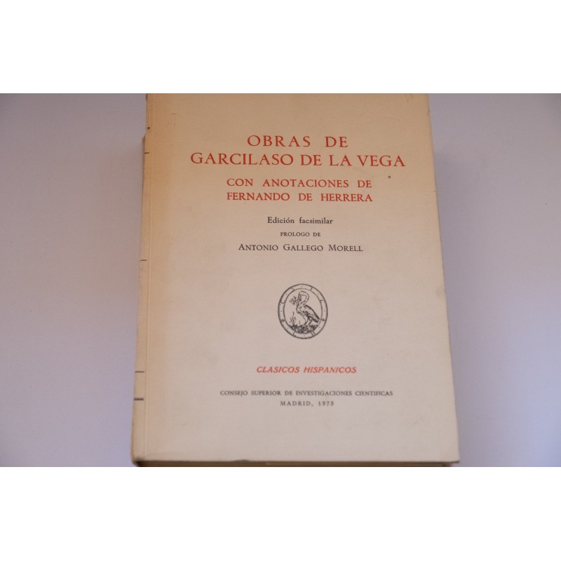 GARCILASO DE LA VEGA (ESPAÑA). Con anotaciones de Fernando de Herrera. Edición facsimilar con prologo de Antonio Gallego Morell. clásicos hispánicos. Edición en perfecto estado sin uso y en oferta de 1973